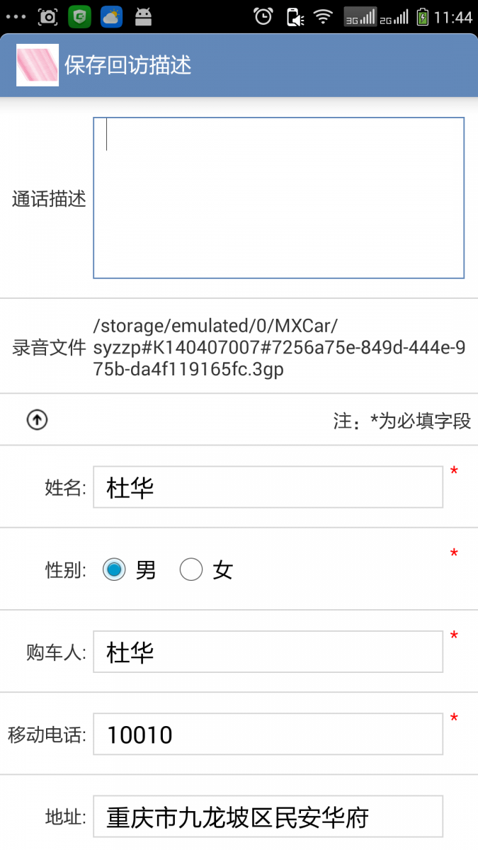 APP需要在回访客户拨打时自动录音,并将录音上传到服务器上。一般情况下Android系统只能够录制单向的音频,一开始我们也不能够录制成功,后来经过方案研究解决了这个问题;上传回访录音采用了队列后台上传的方式,这样避免了手机网络中断或者其他原因造成文件上传失败的风险。