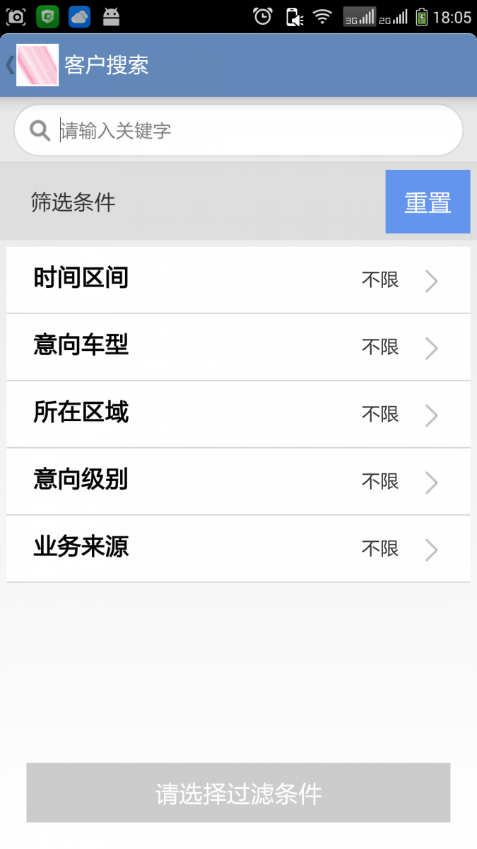 客户列表-关键字过滤: